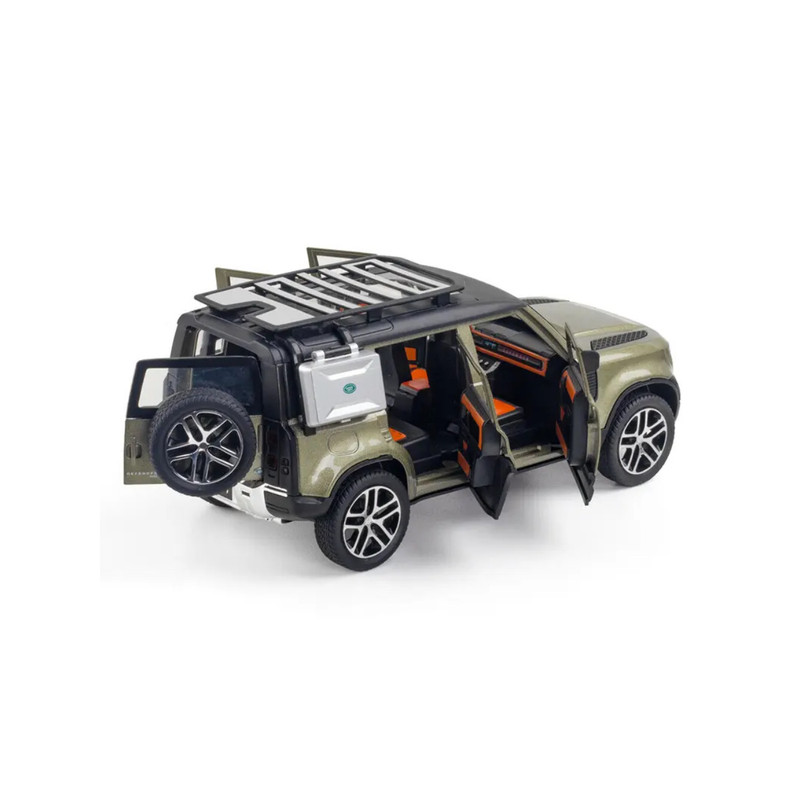 اسباب بازی ماشین عقب کش لندرور دیفندر Defender با کیفیت عالی و رنگ جذاب میتونه بهترین هدیه برای ماشین بازی کودکان باشه. ماشین فلزی اسباب بازی رو به سمت عقب بکشید و رها کنید تا با سرعت به سمت جلو حرکت کنه. این ماشین اسباب بازی چراغ و صدای ماشین هم داره که وقتی چرخ های جلو رو فشار بدید فعال میشن. درب ها ، کاپوت و درب صندوق عقب باز و بسته میشن. همراه این ماشین یک عدد بیل کوچک هست که در محفظه مخصوص می تونید قرار بدید و همچنین یک نردبان با قابلیت جمع شدن هم کنار این ماشین نصب شده.