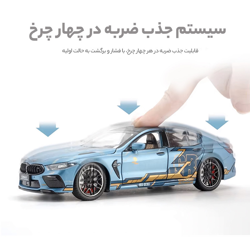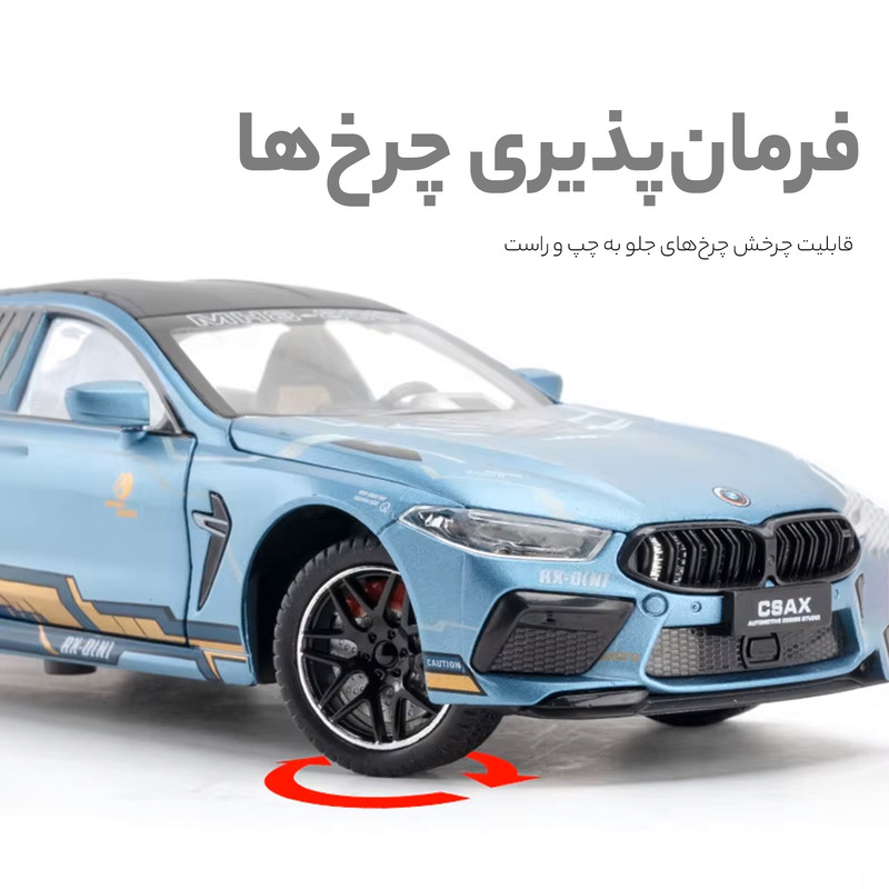 ماشین بی نظیر و بسیار زیبای بیا م و m8 من هارت در مقیاس ۱/۲۴ از برند چه ژی میباشد درای ویژگیهای فراوان از قبیل چرخهای فرمانپذیر دارای چراغ دو حالته صدای موتور تنام دربها باز شو دارای فنربندی وکیوم باز و بست دربها میباشد.
