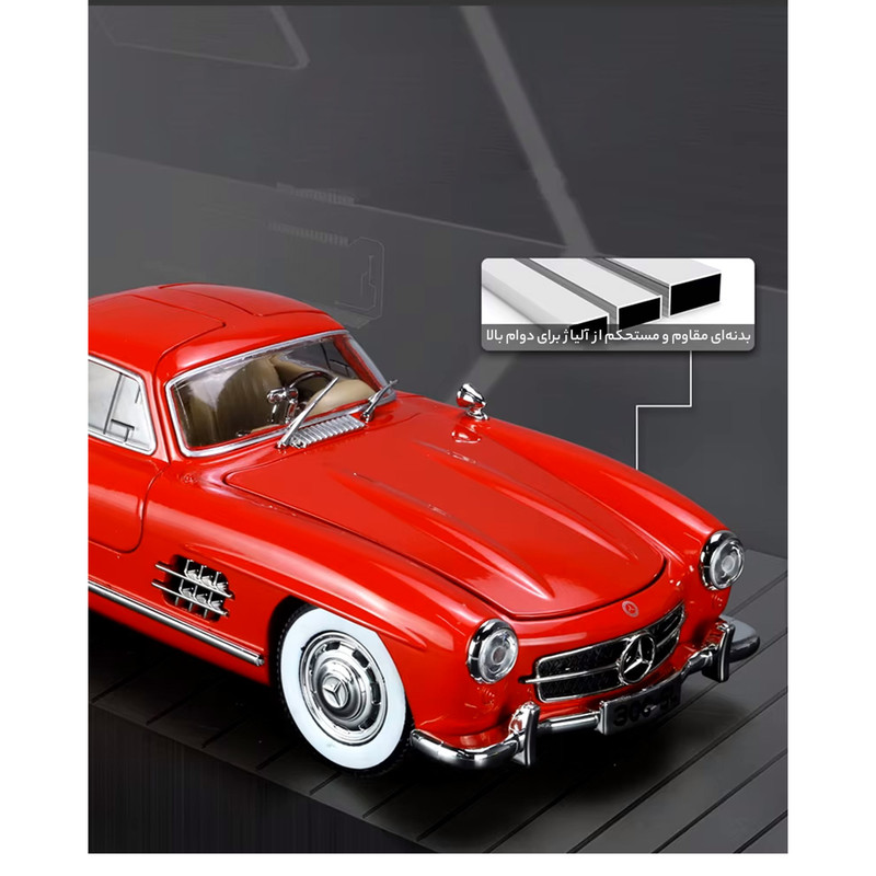 | سایر توضیحات | ماشین از جنس فلز می باشد. قسمت زیر ماشین از جنس پلاستیک مستحکم می باشد. قابلیت باز شدن دو درب اصلی به بالا را دارا است. قابلیت باز شدن کاپوت و صندوق عقب را دارا است. چراغ دار و موزیکال می باشد. دارای سیستم عقب کش می باشد. |