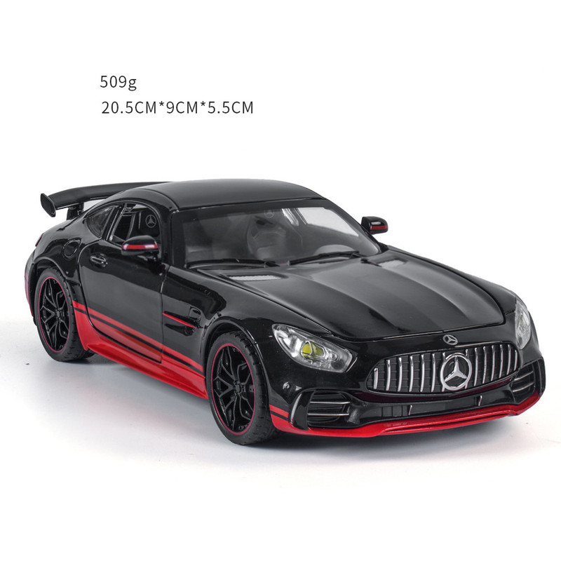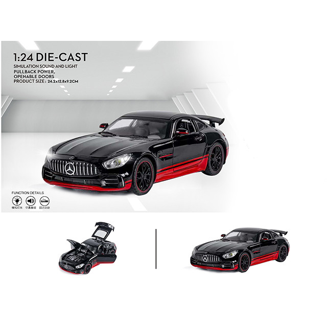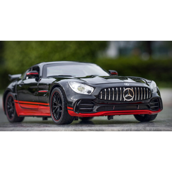 MERCEDE BENZ AMG GTR یکی از با کیفیت ترین تولیدات کمپانی CHE ZHI میباشد که تخصص ان تولید ماکت های فلزی به روش دایکست میباشد.در این محصول جزئیات به خوبی رعایت شده و لوگوی بنز به وضوح روی ماشین دیده میشود.این ماکت دوست داشتنی با اسکیل 1:24 از نمونه ی واقعی ساخته شده که جزء ماکت های بزرگ حساب میشود که طرف دارهای زیادی دارد.درب های ماشین،کاپوت و صندوق ان باز میشود.همچنین این ماشین دارای سیستم عقبکش،موزیکال و چراغ های عقب و جلو روشن میشوند که این امکانات باعث شده است محصولی کاملی رو خریداری کنید.
