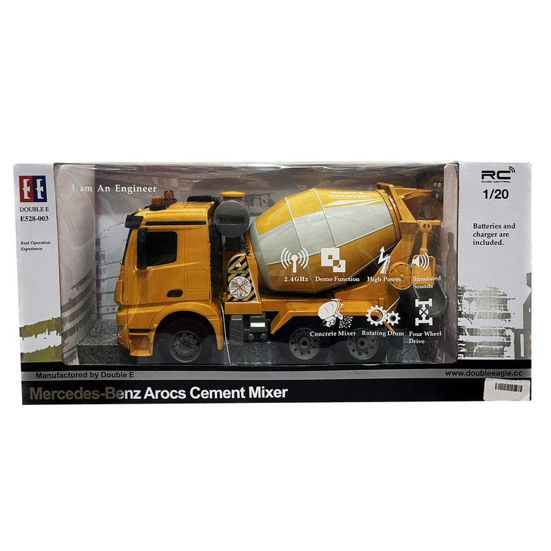 اسباب بازی میکسر بتن کنترلی شارژی ،با قابلیت حرکت عقب ، جلو ، چپ ، راست ، صدادار ، چرخش محفظه بتنی یک اسباب بازی جذاب از برند معروف EE از سری ماشین های راه سازی کنترلی مناسب کودکان و نوجوانان و یا استفاده به عنوان ماکت تزیینی در دفاتر و شرکت های ساختمانی می باشد.