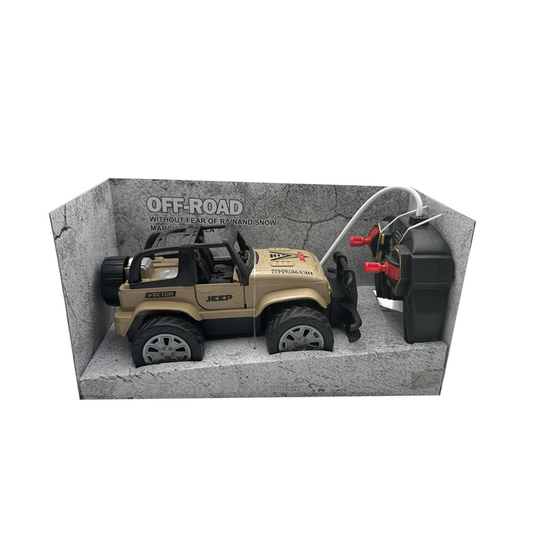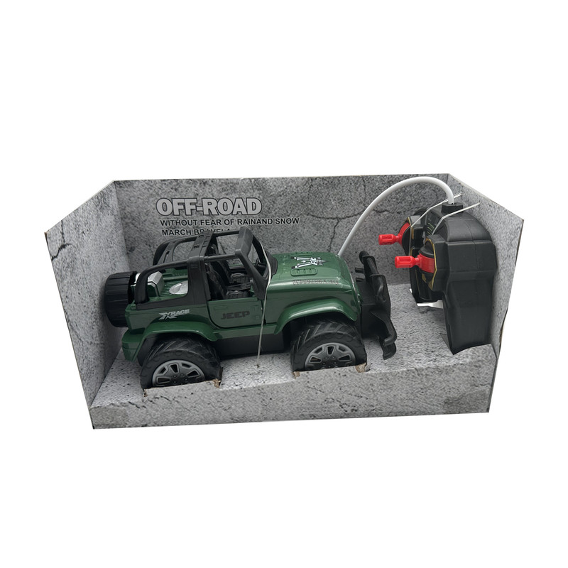 اسباب بازی ماشین کنترلی جیپ آفرود یک ماشین کنترلی با باطری قلمی قابل شارژ و همراه با کابل شارژ می باشد. این ماشین کنترلی دارای ریموت کنترل بی سیم 4 کانال (قابل حرکت به جلو، عقب، راست و چپ) می باشد. این ماشین آفرود به طول تقریبی 20 سانتی متر بوده که قابلیت باز و بسته شدن درب ماشین دارد.