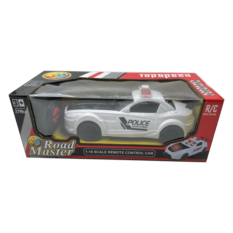 اسباب بازی ماشین کنترلی پلیس در 2 رنگ سفید و مشکی ارائه می شود. این ماشین پلیس کنترلی دارای کنترل 4 کانال و قادر به حرکت در 4 جهت جلو، عقب، چپ و راست می باشد. همچنین این ماشین پلیس دارای چراغ های رنگی رنگی روی کاپوت ماشین می باشد.