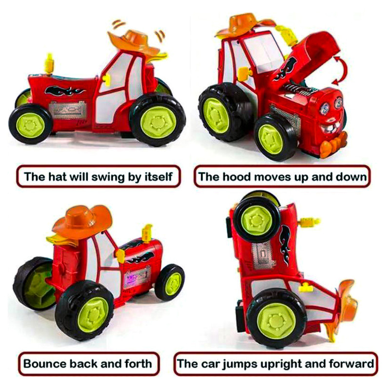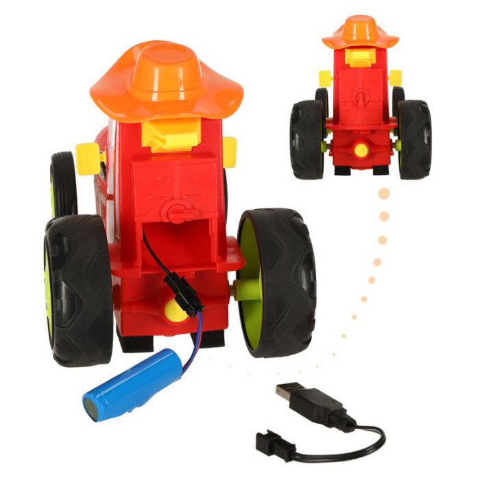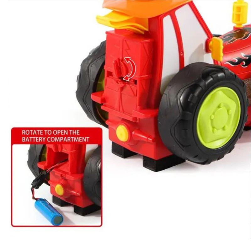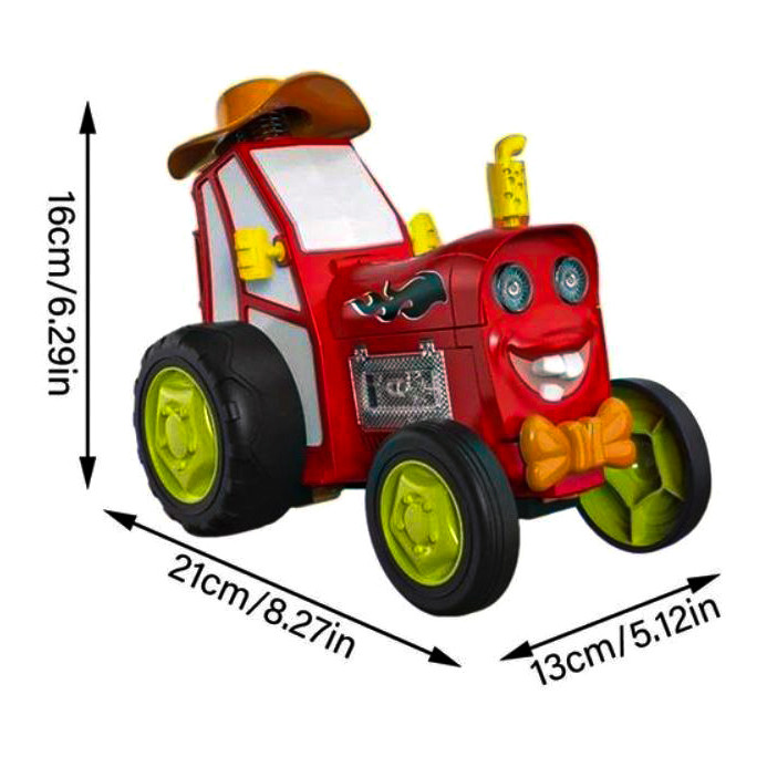 | سایر توضیحات | یک محصول بسیار جذاب با حرکات جالب و بانمک ( حرکت بر روی دو چرخ عقب ، باز و بسته شدن در کاپوت ، حرکت تراکتور بصورت بالا و پایین شبیه حرکت اسب ، دارای موزیک جذاب و چراغ دار ) |