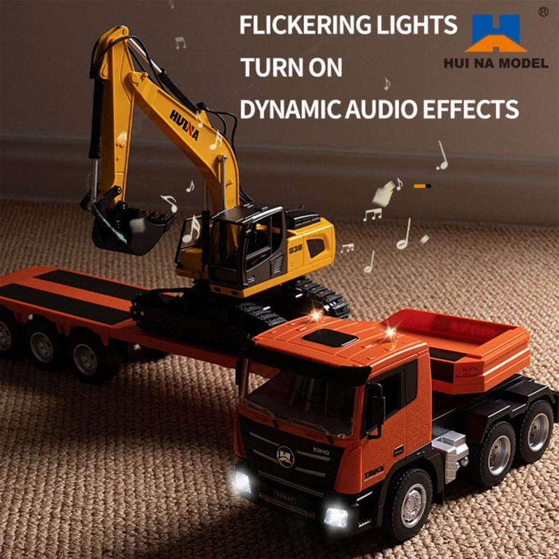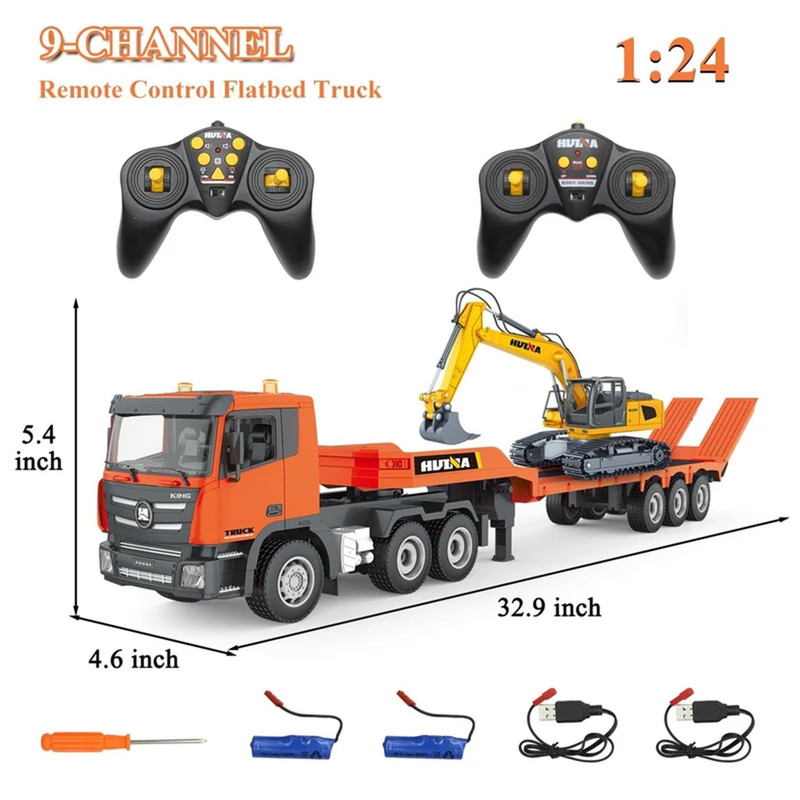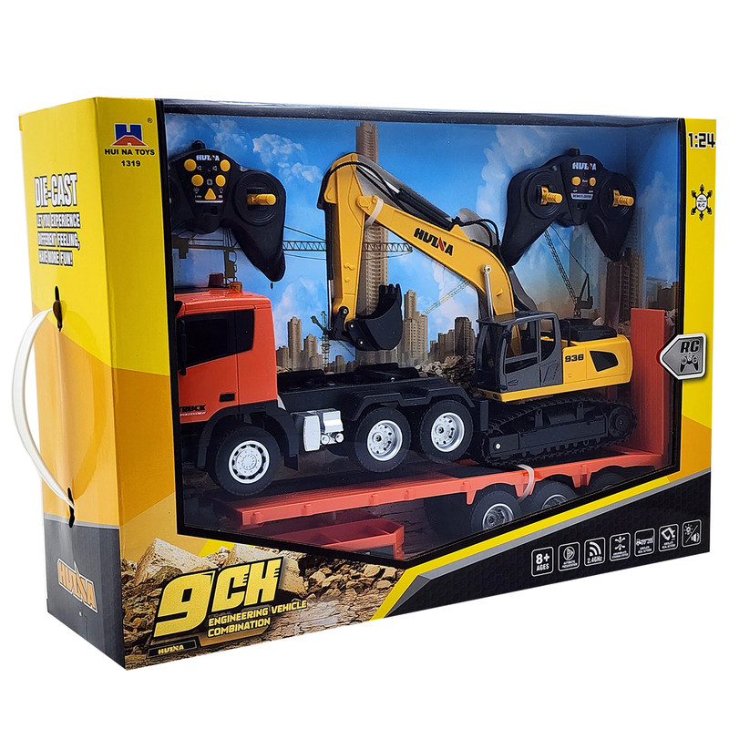 | سایر توضیحات | تریلر حمل خودرو به همراه بیل مکانیکی هر دو شارژی کنترلی که با مقیاس 1:24 از روی نمونه واقعی ساخته شده اند . دارای کیفیت عالی محصول برند معتبر هوینا . |