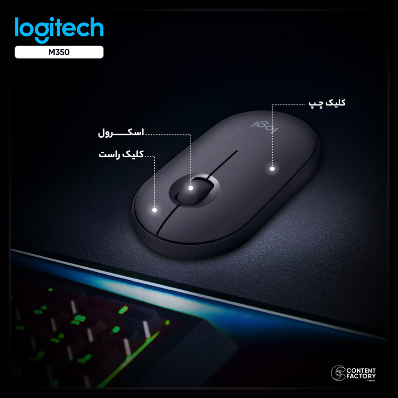ماوس بی سیم لاجیتک مدل M350 یک ماوس باتری خور و سایلنت است که هنگام کلیک کردن، هیچ صدایی از خود منتقل نمیکند. جالب است که شما متوجه کلیک میشوید، اما صدایی در محیط اطراف نخواهید شنید! اندازه این محصول متوسط بوده و در وزن و ابعاد مناسب، باعث خستگی مچ دست نخواهد شد.