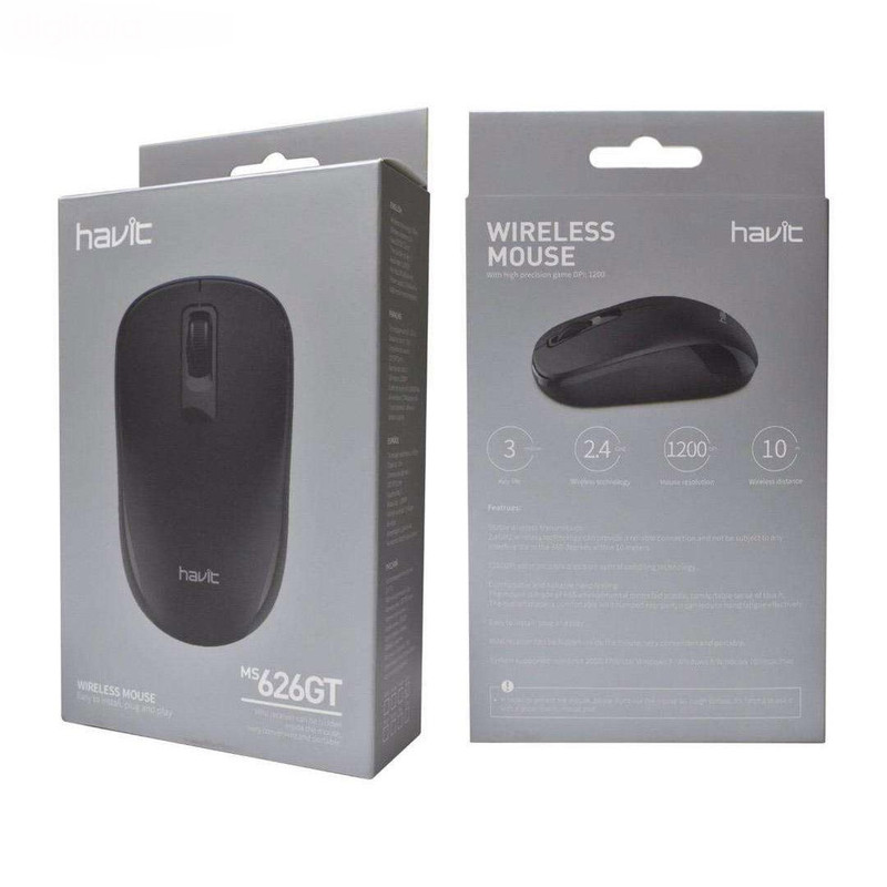 نوع اتصال موس هویت مدل MS626GT از نوع بی سیم وایرلس با فرکانس 2.4GHz است. موس بی سیم Havit مدل MS626GT برای ارتباط با دانگل USb نصب شده بر روی کامپیوتر دارای برد وایرلس تا 10 متر است. این ماوس دارای 3 کلید می باشد.از ویژگی های دیگر موس بی سیم Havit مدل MS-626 می توان به دقت حرکتی 1200 DPI اشاره نمود. این محصول از منبع تغذیه 1 عدد باتری قلمی برخوردار است و همچنین از اکثر سیستم عامل ها از جمله ویندوز 7،8،10 XP , 2000 ، مک، لینوکس، اندروید و... پشتیبانی می کند.
