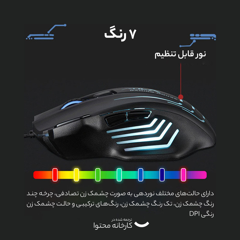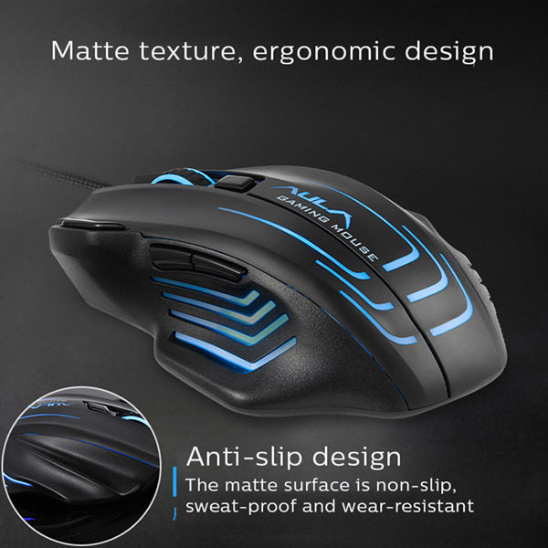 محصولی که در این قسمت مشاهده میکنید یکی از ماوسهای پیشرفتهی شرکت آئولا است. این ماوس که 7 دکمه مجهز شده است برای اجرای بازیهای کامپیوتری و کنترل مولتیمدیا بسیار مناسب است. با توجه به قابلیت تنظیم دقت ماوس تا 6400 DPI میتوان گفت که از این محصول برای اجرای بازیهای کامپیوتری ایدهآل است. نوع حسگر این محصول بهصورت نوری و یا اپتیکال است که دقت بسیار بالایی را به ارمغان میآورد. طول کابل این محصول بهصورت استاندارد بوده و به 1.5 متر میرسد همچنین پوشش کابل از نوع پلاستیک با کیفیت است که مقاوم آن را در طول زمان و طی استفادهی طولانیمدت بالا میبرد. برای کلیدهای ماوس میزان 5 میلیون کلیک توسط شرکت سازنده عنوان شده که نشان از مقاومت بالای محصول دارد. برای اتصال دستگاه به رایانه بایستی از درگاه استاندارد USB استفاده کنید که در تمامی کامپیوترهای امروزی یافت میشود. شرکت سازنده این محصول را از مدلهای مخصوص بازی خود معرفی کرده است.