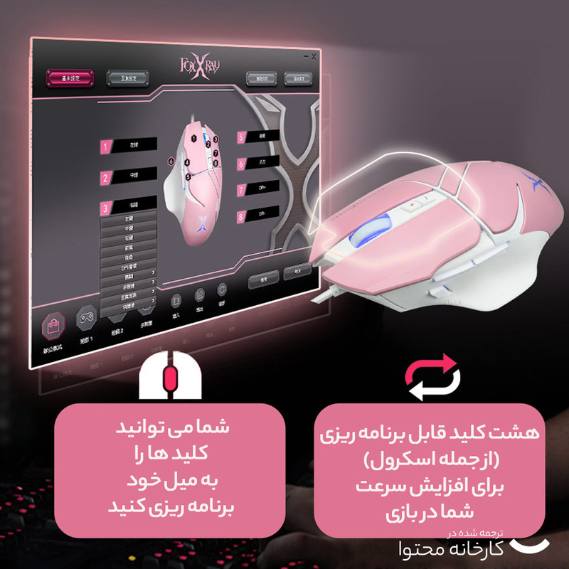 موسهای گیمینگ از جمله محصولاتی هستند که تنوع بسیار بالایی در بازار محصولات کامپیوتری دارند. از جمله پرطرفدار ترین و پرفروش ترین موسها میتوان به موسهای مخصوص بازی یا گیمینگ اشاره کرد. این دسته از محصولات به دلیل اهمیت بسیار بالایی که در انجام بازیهای ویدیویی دارند، بیش از سایر محصولات زیر زره بین گیمرها قرار میگیرند و این افراد برای انتخاب یک موس گیمینگ، ویژگیها و مزایای متنوعی را مد نظر قرار میدهند. شرکت فاکس ری به عنوان یکی از تولید کنندگان محصولات گیمینگ، در کنار در نظر گرفتن ویژگیهای سختافزاری مختلف برای موسهای گیمینگ خود، نگاه ویژهای به ارگونومی و طراحی ظاهری آنها دارد. موس گیمینگ FXR-SM-69 هم یکی از محصولات پرطرفدار شرکت فاکس ری است که در کنار طراحی ظاهری جذاب و ارگونومی عالی، از مزیتهای دیگری از جمله 8 دکمهی جانبی بهره میبرد. همچنین، دقت این موس معادل 3200dpi است که میتوان از بین چهار حالت مختلف 1200، 1600، 2000 و 3200 یکی را به عنوان میزان دقت دلخواه گزینش کرد.