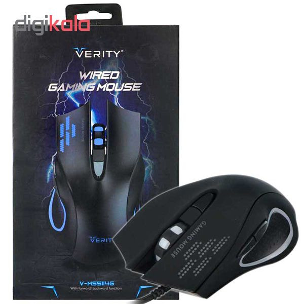 اگر گیمر هستید و یا به طور کلی تایم زیادی را صرف بازی های کامپیوتری و... می کنید، قطعا ملزومات گیمینگ هم مورد مصرف شما هست؛ وریتی با ماوس گیمینگ خود با عنوان Verity V-MS5114G به خوبی محصولی را در اختیار شما می گذارد که امکانات یک ماوس مخصوص بازی را به شما می دهد و در کنار آن ، عملکرد شما را نیز بهبود میبخشد. روی این ماوس مخصوص بازی 4 کلید تعبیه شده تا کاربری شما را به هر نحوی راحت و آسان کند. کلیدی مخصوص برای عوض کردن میزان دقت ماوس که به شدت به کار می آید و عملکرد شما را به خوبی ارتقا می بخشد. میزان دقت V-MS5114G بین سه حالت قابل تغییر است و شما می توانید این مقدار را بین یکی از اعداد 800Dpi - 1200Dpi - 1600Dpi تنظیم کرده و مورد استفاده قرار دهید. بدین صورت متناسب با عملی که با ماوس انجام خواهید داد، هیچ نقصی در کارهای شما پدیدار نخواهد شد. ماوس وریتی باسیم بوده و از طریق USB به سیستم شما متصل می شود.