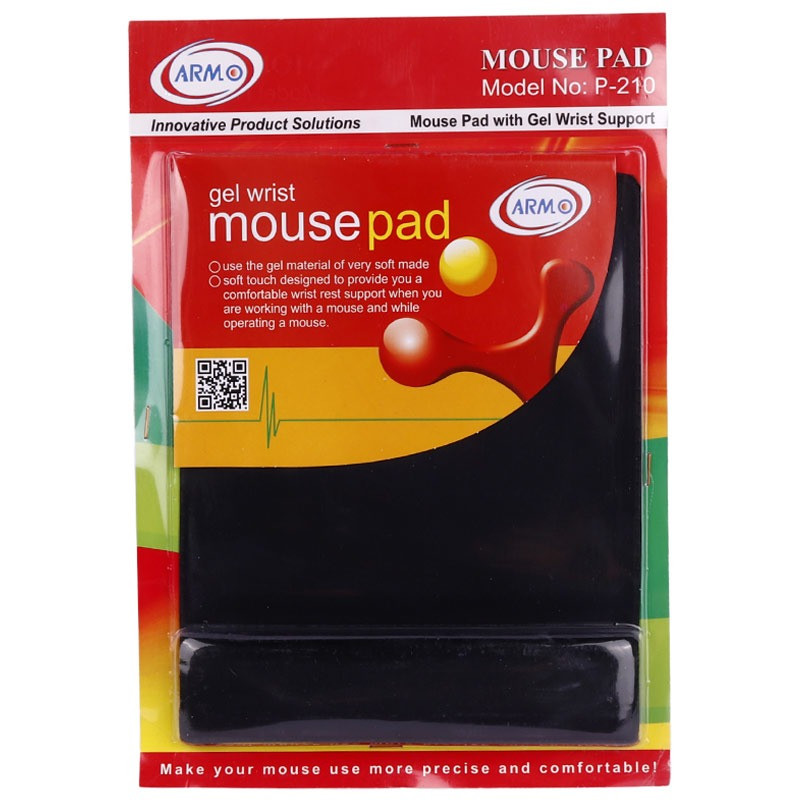 ماوس پد طبی آرمو مدل P-210 ابعاد 17x21 سانتی متر,مقاوم در برابر لغزش با دارا بودن استراحتگاه مچ دست,موفق به کسب استاندارد سلامت و ایمنی محصول شامل FCC / CE,طراحی طبی مطابق با ارگونومی دست کاربر جهت جلوگیری از وارد شدن فشار، ساخته شده از جنس پارچه با روکش چرم مصنوعی دور دوزی شده میباشد.