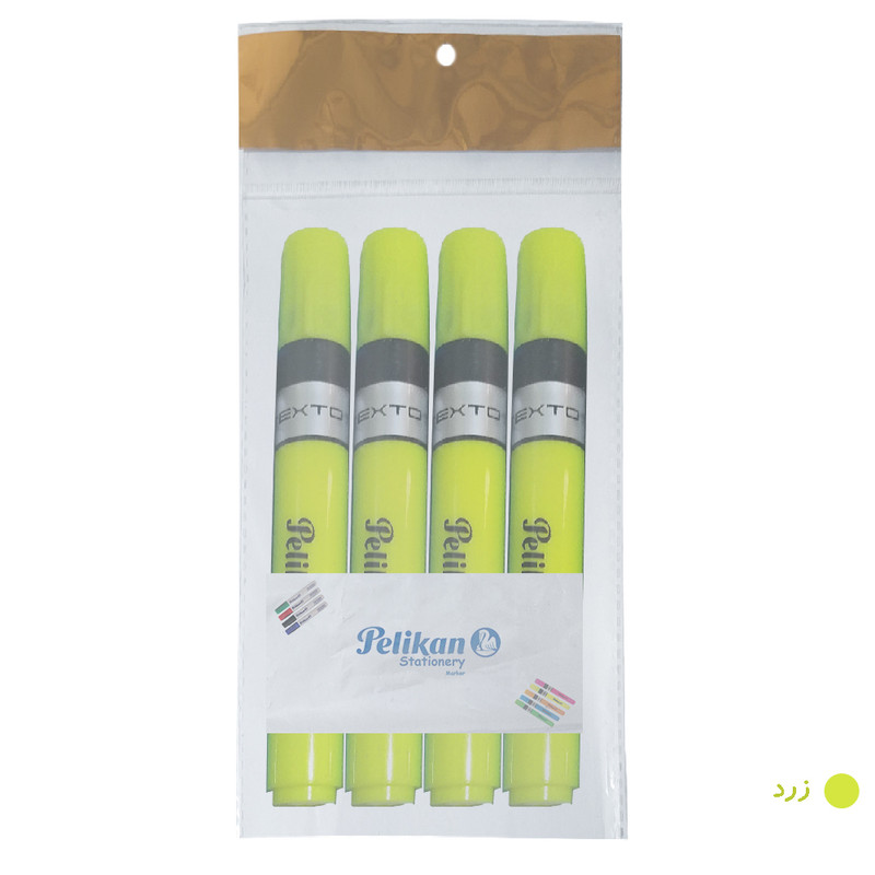 | سایر توضیحات | انواع ماژیک هایلایت پلیکان در بسته بندی 4 عددی آویزدار مدل چند رنگ شامل یک عدد ماژیک زرد، یک عدد ماژیک نارنجی، یک عدد ماژیک صورتی و یک عدد ماژیک سبز می باشد |