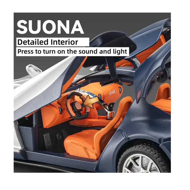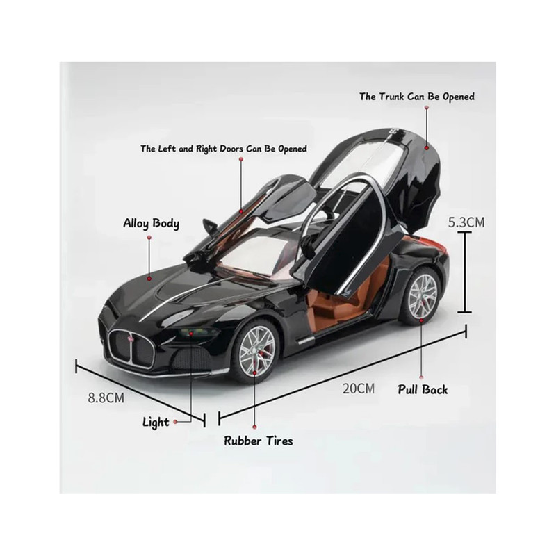 ماشین فلزی بوگاتی آتلانتیک 2023 با طراحی زیبا و دقت بالا بر اساس نمونه واقعی هدیه ای نفیس برای کلکسیونرها و علاقمندان به ماشینهای خاص میباشد که دارای قابلیت باز شدن درها و صندوق عقب و درب موتور است در صندوق عقب دو عدد چمدان قابل جابجایی دارد آینه های بغل قابل تاشو هستند فنر بندی چهار چرخ نرم بوده و چرخهای جلو بصورت دستی فرمانپذیر است فشار روی فرمان قابلیت پخش صدای بوق رادارد و با فشار روی ماشین صدای استارت و روشن شدن پخش میگردد