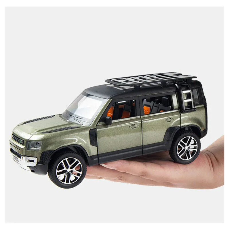 اسباب بازی ماشین عقب کش لندرور دیفندر Defender با کیفیت عالی و رنگ جذاب میتونه بهترین هدیه برای ماشین بازی کودکان باشه. ماشین فلزی اسباب بازی رو به سمت عقب بکشید و رها کنید تا با سرعت به سمت جلو حرکت کنه. این ماشین اسباب بازی چراغ و صدای ماشین هم داره که وقتی چرخ های جلو رو فشار بدید فعال میشن. درب ها ، کاپوت و درب صندوق عقب باز و بسته میشن. همراه این ماشین یک عدد بیل کوچک هست که در محفظه مخصوص می تونید قرار بدید و همچنین یک نردبان با قابلیت جمع شدن هم کنار این ماشین نصب شده. دارای چراغ و صدای ماشین (جلوه های نوری و صوتی) ساخته شده از فلز و پلاستیک با کیفیت قابلیت باز شدن درب ها ، کاپوت و صندوق عقب