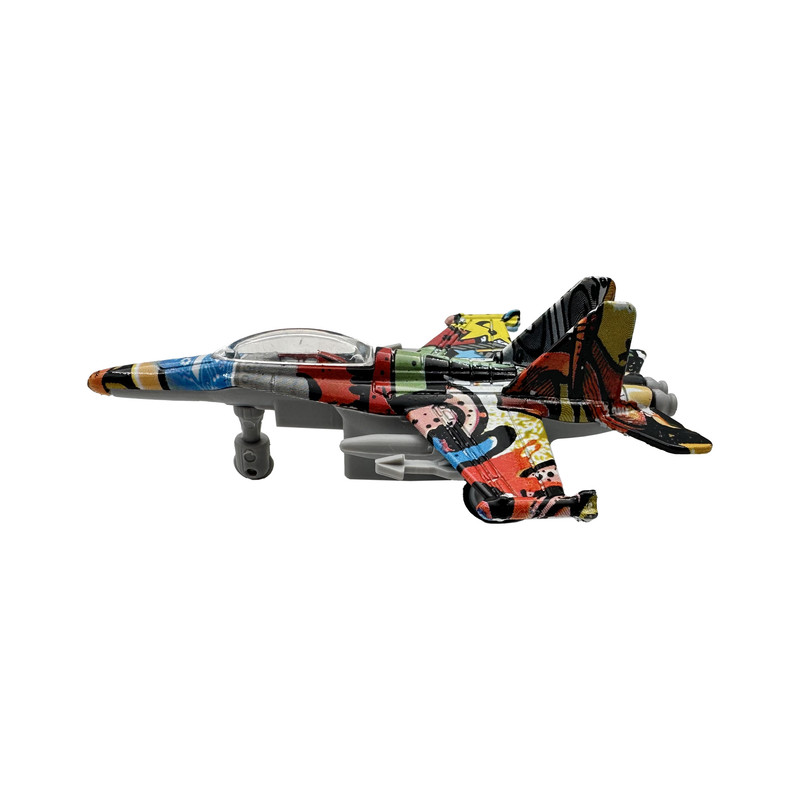 اسباب بازی ماکت هواپیما رنگی رنگی که در بسته بندی تک جعبه ارائه می گردد. این هواپیما فلزی به صورت عقب کش کار می کند. هواپیما جنگی رنگی رنگی دارای طول 10 سانتی متر می باشد.