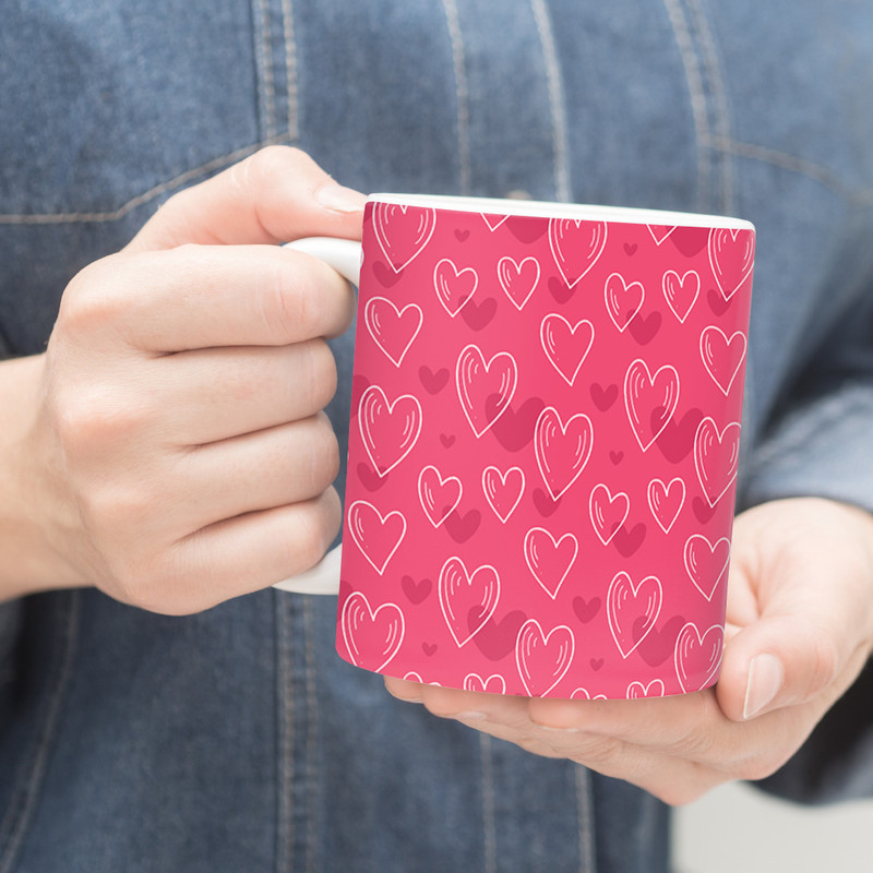 | طرح ماگ | پترن قلب سفید و قرمز |