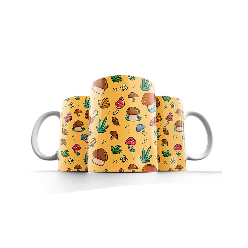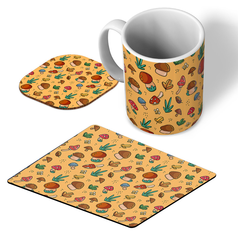 ماگ ترمه طراحان ایده مدل پترن برگ و قارچ کد strm0120 همراه با زیر لیوانی و موس پد