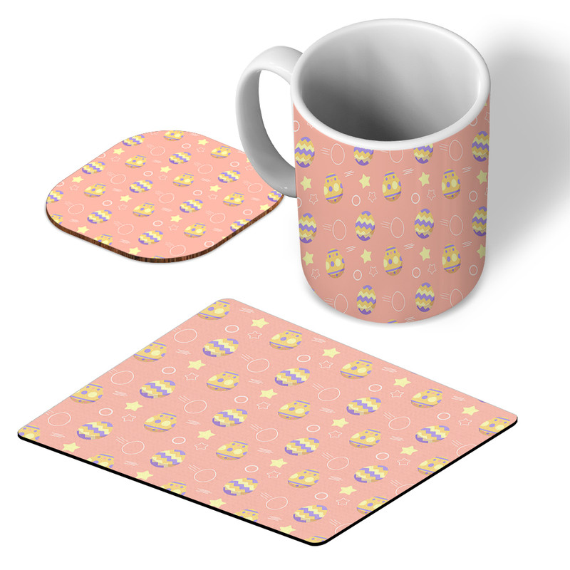| طرح ماگ | ماگ ترمه طراحان ایده مدل پترن تخم مرغ رنگی کد strm0167 همراه با زیر لیوانی و موس پد |