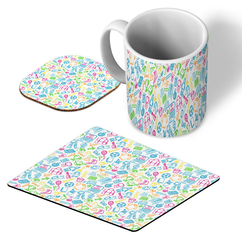 | طرح ماگ | پترن وسایل رنگی مدرسه |