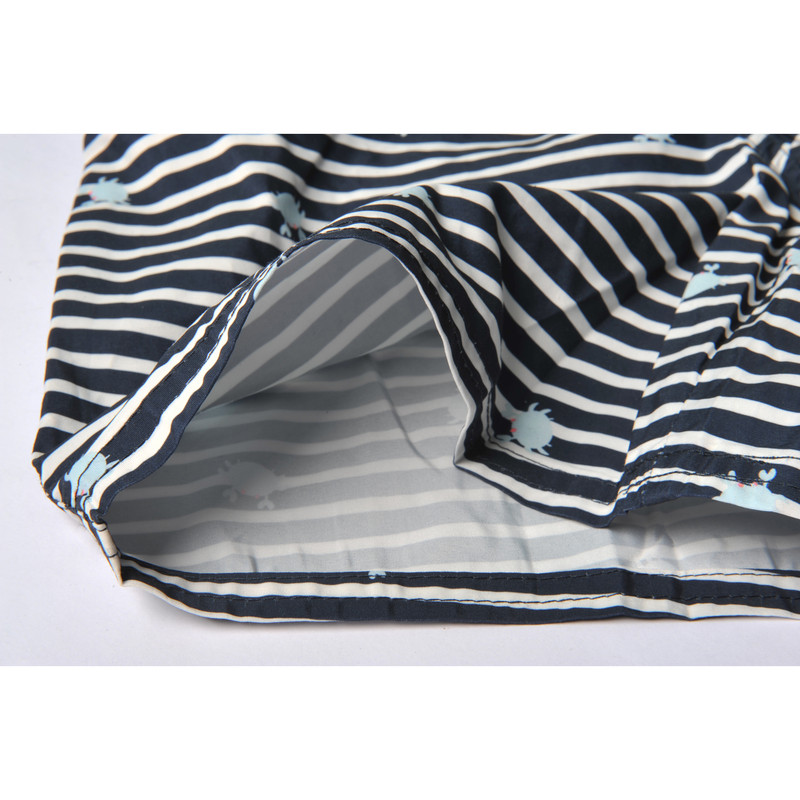 این برند در فرانسه طراحی می شود بنابراین با اطمینان می توان گفت که یکی از اصلی ترین برندهای پوشاک است که بر تن فرانسویان می درخشد و خودنمایی می کند. برند کیابی دارای شبکه توزیع در بسیاری از نقاط جهان است و از این جهت این برند برای مردم جهان کاملا شناخته شده است.مایو پسرانه کیابی مدل 57577 راه راه خرچنگی 100% پلی استر است