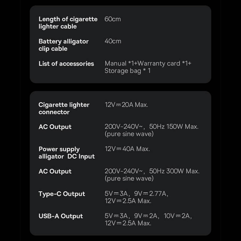 با توجه به توان 300 وات این دستگاه که توسط 2 عدد پریز برق و یک عدد پورت USB و یک پورت Type C با قابلیت پشتیبانی از PD و QC3.0 هر کدام با توان 30 وات قادر هستید انواع گوشی و وسایل برقی خورد را در سفر استفاده نمایید و دیگر نگران مشکل تامین برق نباشید