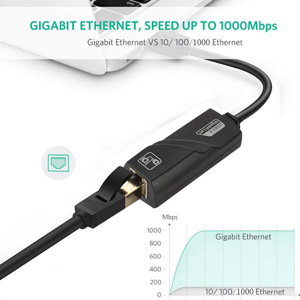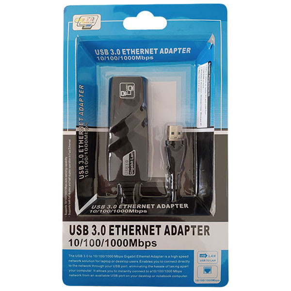 | سایر توضیحات | پورت ورودی : USB3.0 پورت خروجی : RJ45 10/1000 پشتیبانی از انتقال داده تا 1000 مگابیت بر ثانیه شدت ولتاژ : 5 ولت مصرف برق استاتیک : 5 ولت 150 میلی آمپر طراحی سبک و قابل حمل جنس مواد سازنده : ABS |