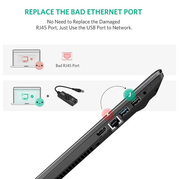 مبدل USB2.0 به RJ45 با سرعت RJ45 10/1000 درگاهی استاندارد برای اتصال به دستگاههایی مثل سوئیچ ها و مودم ها هست .پورت RJ45 دستگاه نوت بوک یا کامیپوتر شما اشغال یا معیوب شده است و شما برای اتصال شبکه می توانید از پورت های USB استفاده کنید . طول کابل این مبدل 15 سانتیمتر است و با تمام سیستم عاملها سازگار میباشد ؛ سرعت انتقال این مبدل از 10/1000 پشتیانی میکند . یکی از ویژگیهای این محصول عدم نیاز به منبع الکتریکی است .