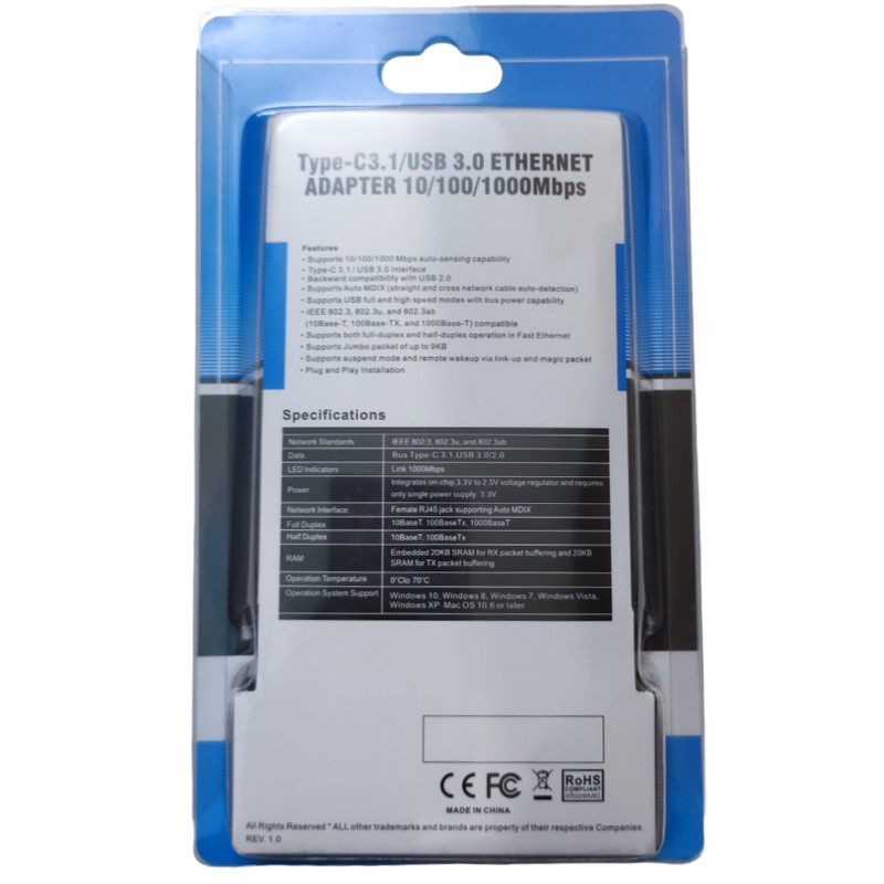 به کمک این مبدل، میتوان از خروجی USB3.0 یک درگاه شبکه به صورت اکسترنال دریافت کرد. این مبدل سرعت انتقال اطلاعات تا 1000 مگابیت بر ثانیه را دارد و بدون هیچ قطعی در ارتباط، انتقال اطلاعات را پشتیبانی می کند. علاوه براین، قابلیت سازگاری با سیستم عامل مک (Mac) و لینوکس (Linux) را در کنار پشتیبانی از سیستمعامل ویندوز (Windows) دارد.
