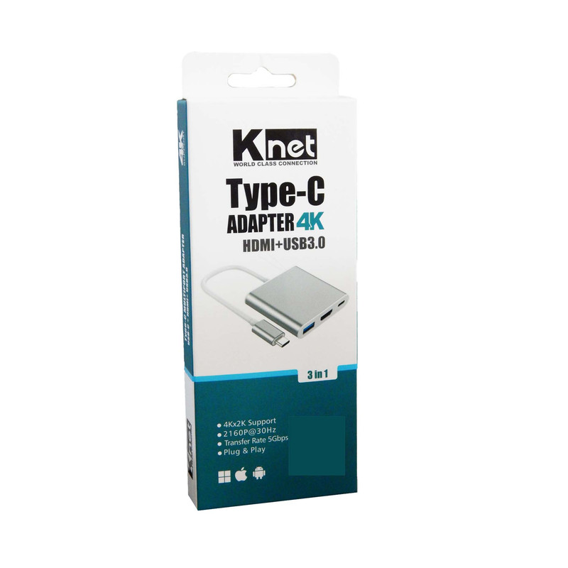 “مبدل ۳ پورت Type C کی نت” Knet K-COUC30HU برای کاربرانی مناسب است که نیاز به اتصال دستگاههای Type-C به تلویزیونها، مانیتورها یا دیگر دستگاههای با ورودی HDMI دارند. این دستگاه امکان انتقال تصاویر و ویدیوهای دستگاههای Type-C به صفحههای بزرگتر را فراهم میکند.همچنین پورت USB 3.0 مکان انتقال اطلاعات و دیتا را با سرعت بالا و اتصال دستگاه های USB را فراهم می کند.همچنین پورت PD این امکان را فراهم میسازد که دستگاه های Type-C خود را به سرعت شارژ کنند.این محصول دارای رزولوشن 4K@30Hz می باشد که کیفیت بالایی را برای شما فراهم میکند.