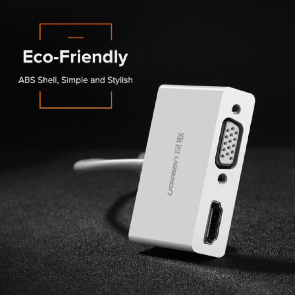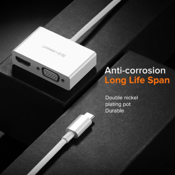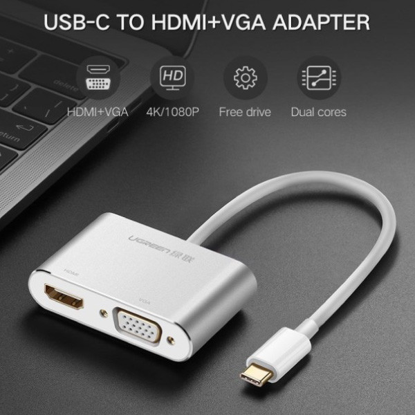 تبدیل Type-C به HDMI و VGA یوگرین مدل 30843-MM123 یک دستگاه جانبی است که به شما امکان میدهد یک دستگاه دارای پورت USB-C را به یک نمایشگر یا پروژکتور با پورت HDMI یا VGA متصل کنید. این تبدیل از نسخه 1.4 HDMI پشتیبانی میکند که حداکثر رزولوشن 4K@30 را ارائه میدهد. همچنین از رزولوشن 1080P در پورت VGA پشتیبانی میکند.این تبدیل برای طیف وسیعی از کاربردها مناسب است، از جمله: اتصال لپ تاپ یا تبلت به یک نمایشگر یا پروژکتور، اتصال کنسول بازی به تلویزیون و اتصال دوربین یا دستگاه ضبط فیلم به تلویزیون.از مزایای تبدیل Type-C به HDMI و VGA یوگرین مدل 30843-MM123 میتوان به پشتیبانی از رزولوشن 4K@30 در پورت HDMI، پشتیبانی از رزولوشن 1080P در پورت VGA، قابلیت پشتیبانی از تصاویر سه بعدی، اندازه کوچک و جمع و جور و... اشاره کرد. دو پورت آن میتوانند به طور همزمان برای اتصال به دو نمایشگر کار کنند، اما وقتی هر دو پورت VGA و HDMI را وصل کنید، فقط از حالت Mirror پشتیبانی میکند و حالت Extended پشتیبانی نمیشود. علاوه بر این، تبدیل یوگرین مدل MM123 از قابلیت Plug and play پشتیبانی میکند و نیاز به نرم افزار یا تنظیمات خاصی ندارد.