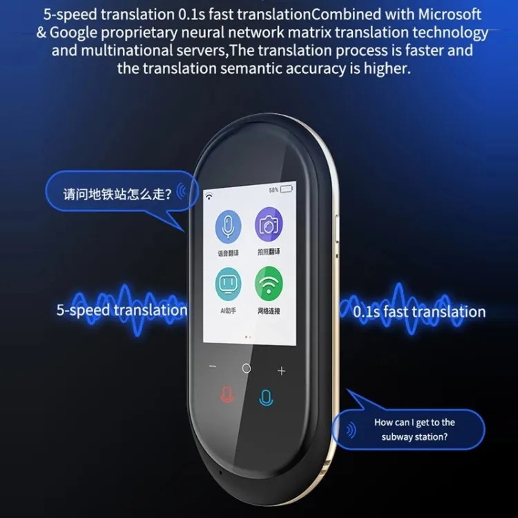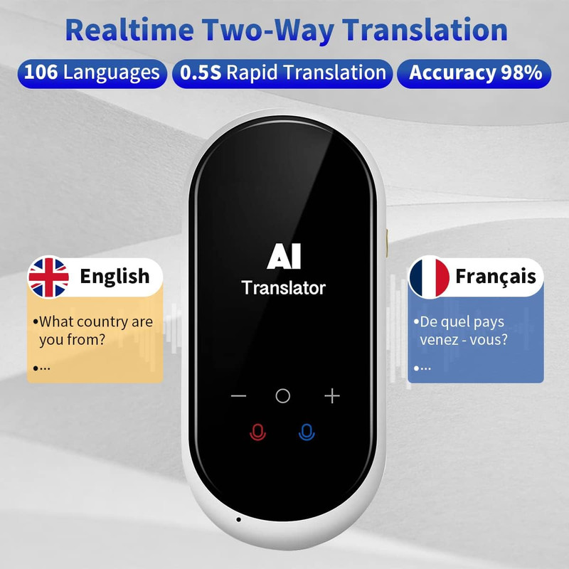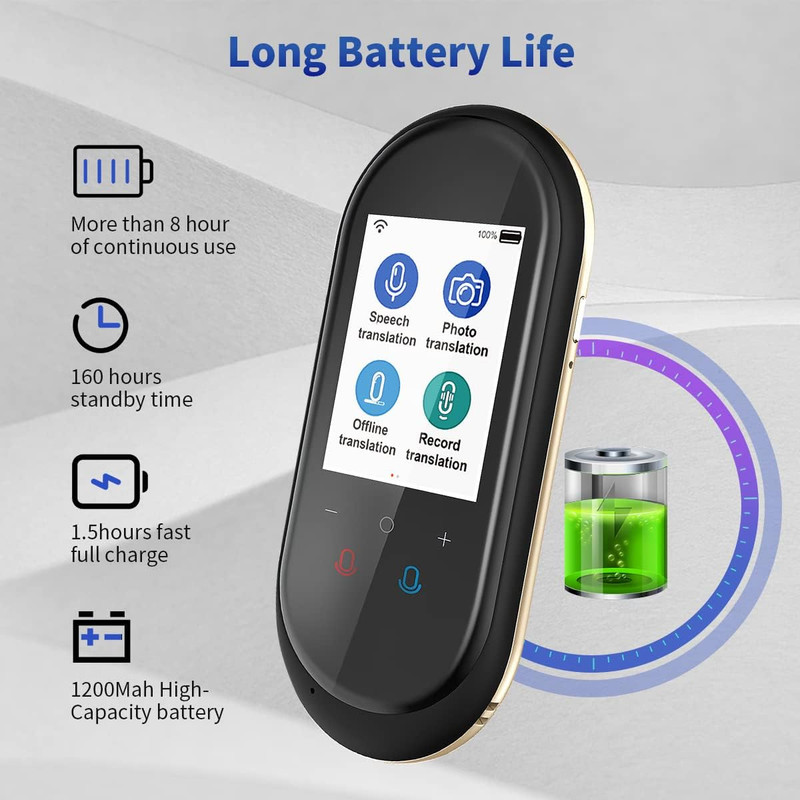 سایر مشخصاتترجمه دقیق آنلاین و آفلاین: دستگاه مترجم زبان از ترجمه صوتی دو طرفه فوری پشتیبانی می کند، که می تواند تا 106 زبان آنلاین را با دقت 98 درصد ترجمه کند. می توانید به راحتی با دوستان خارجی به صورت واقعی تر ارتباط برقرار کنید. علاوه بر این، دستگاه مترجم مجهز به مترجم آفلاین به 8 زبان رایج است لطفاً از قبل دانلود کنید. ما همچنان توصیه می کنیم برای اطمینان از اثربخشی و صحت ترجمه از ترجمه آنلاین استفاده کنید. ترجمه تصویر HD: دستگاه ترجمه زبان مجهز به دوربین تشخیص با وضوح بالا است که از ترجمه عکس تا 45 زبان پشتیبانی می کند. صفحه نمایش لمسی بزرگ 2.8 اینچی TFT (IPS) با وضوح بالا خوانایی کامل از صدا به متن را فراهم می کند. با این عملکرد ترجمه عکس، دستگاه ترجمه فوری زبان دو طرفه Real Time به شما کمک می کند تا با محیط های مختلف سازگار شوید. منوها / علائم جاده / مجلات / برچسب ها را به زبان های مختلف بخوانید. کاهش نویز پیشرفته و ضبط صدا: این دستگاه ترجمه زبان دارای دو میکروفون کاهش نویز و بلندگوهای با وفاداری بالا است که به شما امکان گوش دادن و ضبط صدای واضح را می دهد. تشخیص گفتار در زمان واقعی با دقت بالا حتی در فاصله اجتماعی فعلی 6.5 فوت قابل درک است. این مترجم قابل حمل از ضبط صدا پشتیبانی می کند، به این معنی که در صورت نیاز می توانید از آن به عنوان ضبط کننده استفاده کنید. این به شما اجازه می دهد تا روی جلسات، ارائه ها و مصاحبه ها تمرکز کنید. طراحی فوق العاده طولانی در حالت آماده به کار و قابل حمل: این مترجم صوتی مجهز به باتری قابل شارژ لیتیوم یونی 1200Mah است و بسته شامل یک کابل شارژ می باشد. دستگاه ترجمه زبان می تواند به مدت 8 ساعت به طور مداوم کار کند و پس از شارژ کامل به مدت یک هفته در حالت ایستاده باشد. طراحی قابل حمل دستگاه ترجمه باعث می شود آن را به راحتی در جیب خود قرار داده و با خود حمل کنید. برای 3-7 روز برنامه سفر یا سفر کاری کافی است. هدیه کامل و قابل اعتماد: دستگاه مترجم را می توان برای مسافرت، خرید، جلسات کاری، سرگرمی، دوست یابی و غیره استفاده کرد. چه برای کودکان، خانواده، دوستان، عاشقان یا به عنوان هدیه تعطیلات، دستگاه مترجم فوری زبان یک دستگاه است. انتخاب هدیه خوب اگر در حین استفاده سوالی دارید، لطفا با ما تماس بگیرید! تیم حرفه ای پس از فروش ما تا زمان رضایت شما در خدمت شما خواهد بود.