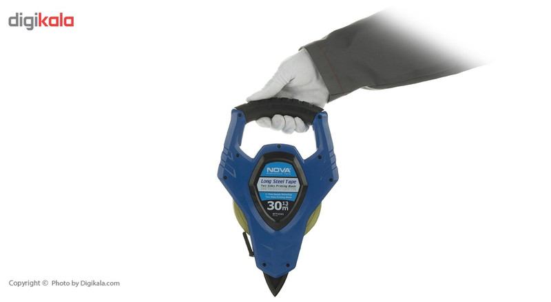 متر فوق یکی از محصولات تولیدی شرکت «نووا» (Nova) بوده که تحت عنوان مدل «NTT1521» به بازار عرضه میشود. این محصول دارای یک نوار 30 متری بوده که ساختاری انعطافپذیر دارد. مسلما جمع کردن نواری با طول 30 متر کمی دشوار خواهد بود، به همین منظور از یک دستگیرهی تاشو برای جمع کردن نوار استفاده شده است. یکی از ویژگیهای این نوار انعطاف بسیار بالای آن است که موجب میشود کاربر با خم کردن آن طول بخشهای منحنی و زاویهدار را نیز اندازهگیری کند. این انعطافپذیری از شکستگی و ترک خوردن نوار نیز جلوگیری میکند. این نوار برحسب واحد متریک درجه بندی شده است و اعداد در هر دوسمت نوار درج شدهاند. شرکت نووا برای این نوار عرض کم 13 میلیمتری را درنظر گرفته است. این نوع طراحی مانع از افزایش وزن متر شده است. این متر با نام متر مهندسی نیز شناخته میشود و برای قرار دادن آن روی محل مورد نظر دارای یک پایهی مخصوص است. از دیگر ویژگیهای این متر میتوان به وجود گیره در بخش ابتدایی نوار اشاره کرد که کار را برای کاربر آسانتر میکند.