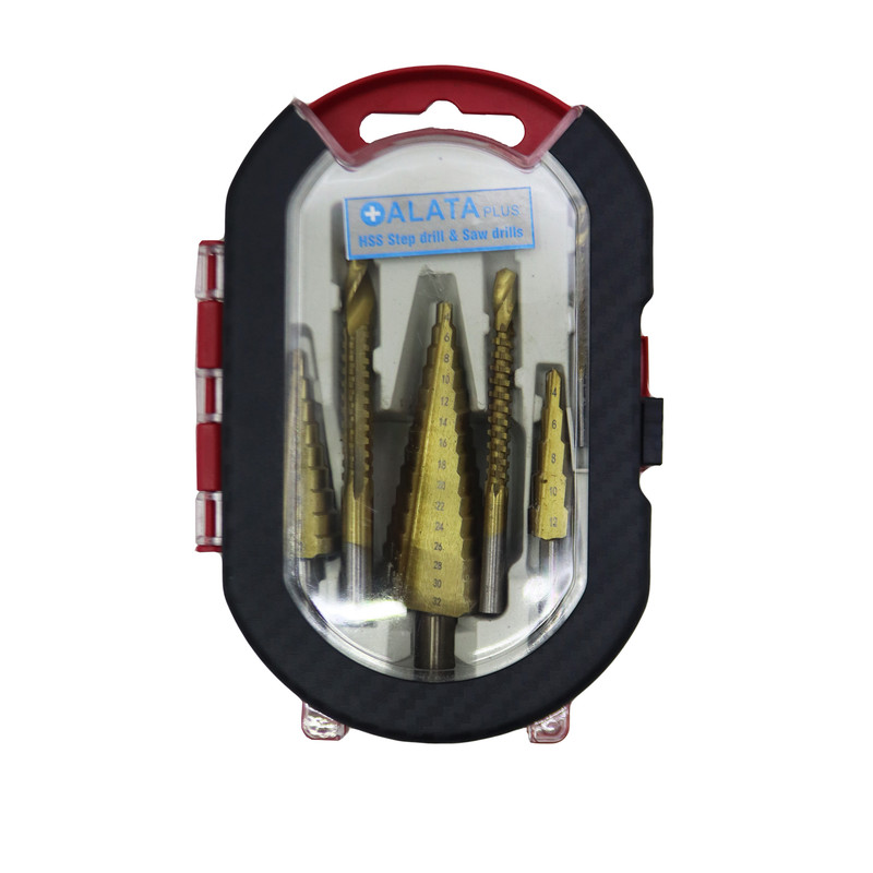 سایر توضیحات- مته کاجی و مته برشی آلاتا مجموعه ۶ عددی - شامل سه عدد مته کاجی ( پله ای ) در سایز های : ۴-۳۲ - ۴-۱۲ - ۴-۲۰( سایز زوج ) - دارای سه عدد مته برش ( اره ای ) در سایز های : ۳ - ۸ - ۶ - این مته‌ها از جنس فولاد تند بر HSS و از روکش تیتانیوم برخوردار بوده و قابلیت سوراخ کاری روی آهن، برنج، مس، آلومینیوم، چوب و پلاستیک را دارد. - عمق هر پله تنها ۵ میلی‌متر است. ( پس حتی در نرم‌ترین مواد مانند چوب یا پلاستیک هم نمی‌توان بیش از ضخامت ۵ میلی‌متر را سوراخ کرد ) - کیفیت بالا