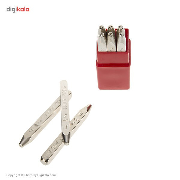 | سایر توضیحات | - دارای جعبه پلاستیکی - حاوی 9 عدد سنبه (سنبه 6 و 9 مشترک) - مناسب برای مارکزنی بر روی مواد با استحکام تقریبی 1200N/mm² - ساخته شده از فولاد و مقاطع سرد کشیده شده - دارای سختی 58 تا 60 راکولسی - دارای پوشش نیکل |