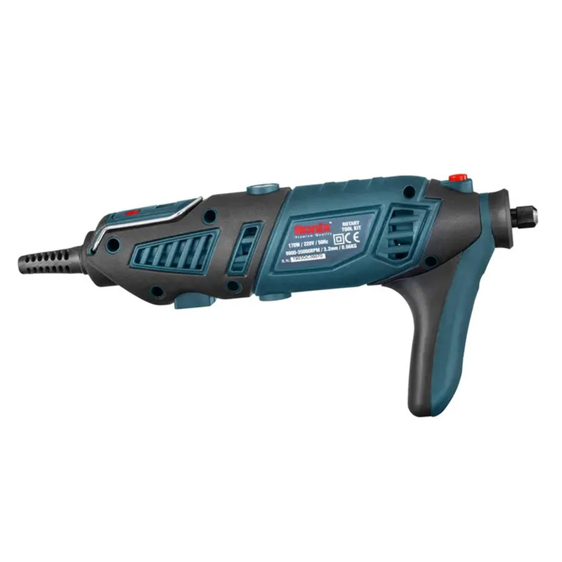 | اقلام همراه | دسته جانبی طراحی شده توسط رونیکس، یک شلنگ انعطافپذیر، پایه آویز، گیره، مهره و 126 عدد متعلقات کاربردی : - 3 عدد کولت - 122 عدد لوازم جانبی شامل: 5 سنگ فرز - 7 متهی الماسه - 12 سنباده استوانهای - 2 میلهی نگهدارندهی سنبادهی استوانهای - 36 صفحه برش دایرهای - 1 سنگ سنبادهی معمولی مکعب - 4 سنگ سنبادهی الماسه - 2 فرچهی مویی و سیمی - 1 سری کاتر - 3 مته - 1 آچار مخصوص - 2 میلهی نگهدارندهی سنگ برش و سنگ سنبادهی الماسه - 40 صفحهی دایرهای سنباده - میله اتصال سنباده - 2 سنگ برش فولاد - 1 شلنگ - پایه اتصال به میز - پایه اتصال به دستگاه - کیف پلاستیکی دفترچهی راهنما به زبان فارسی و لاتین |