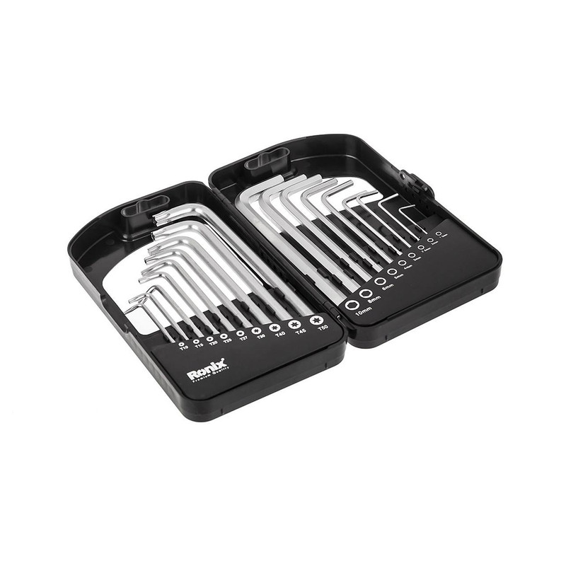 | سایر توضیحات | 9 عدد آچار آلن در سایزهای 1.5، 2، 2.5، 3، 4، 5، 6، 8 و 10 میلیمتر - 9 عدد آچار ستارهای درسایزهای T10، T15، T20، T25، T27، T30، T40، T45 و T50 - قابلیت آویزان کردن قاب نگهدارنده - آچارهای با زاویه 90 درجه |
