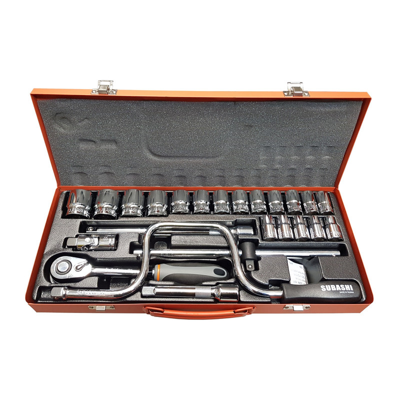جعبه بکس پیش روی شما از سری جعبه بکسهای خوشنام محصولات سوباشی تایوان ( SUBASHI ) میباشد که بی شک توانسته رقبای خود را کنار زده و جایگاه خوبی را در میان جعبه های موجود در بازار کسب کند. این کمپانی با تلاش مضاعف در راستای راضی نگه داشتن مشتریان خود توانسته از گذشته تا کنون محصولات خود را روز به روز بهبود دهد و جایگاه خوبی را در دنیای ابزار کسب کند. از دلایل اصلی این برتری میتوان به دلنشینی کار و ارگونومیک بودن یا به نوعی User Friendley ابزارآلات داخل جعبه اشاره کرد، از دیگر مزایای آن میتوان به جغجغه ی 72 دندانه آن اشاره کرد که علاوه بر استحکام بالا نرمی کار با آن برای کاربر بسیار لذت بخش خواهد بود و حتی آچار بکس های آن با آلیاژ کروم وانادیوم و پرداخت آینه ای که ایمنی و استانداردهای روز اروپا را اخذ نموده است، علاوه بر اینها آچار بکس های شما یک جعبه بسیار شکیل و خوش رنگ با ورق ضخیم و مقاوم را دارا خواهند بود که بی شک لذت کار را برای شما دو چندان خواهد نمود.