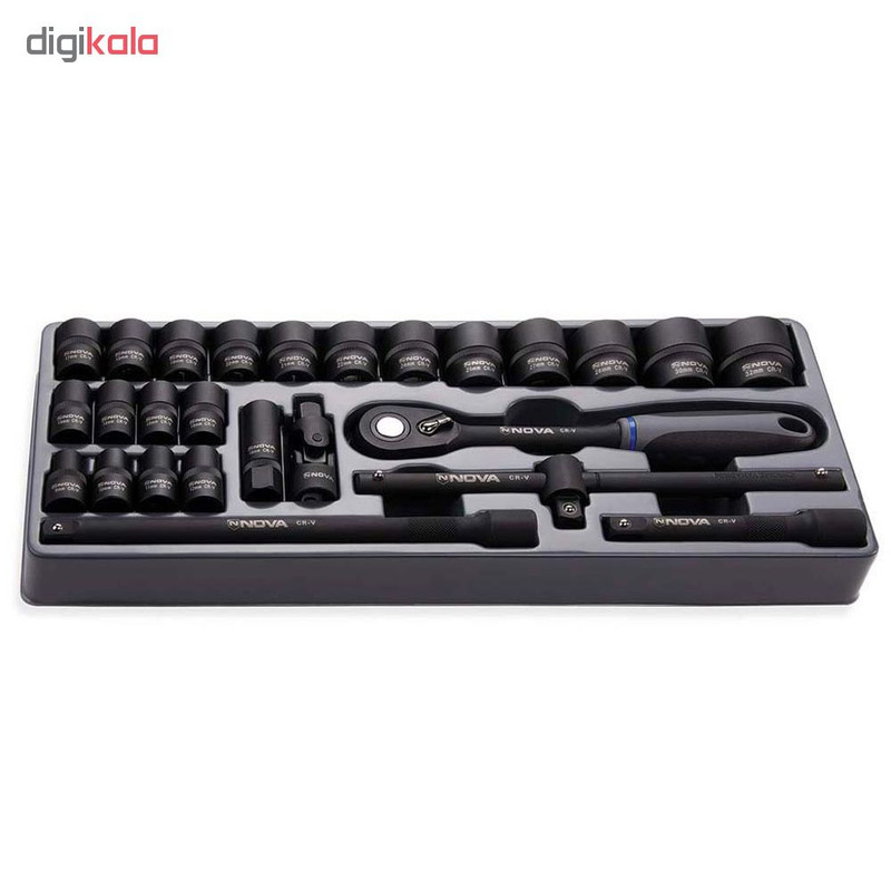 | سایر توضیحات | - دارای دو عدد اضافه کننده 250 و 125 میلیمتری - یک عدد آچار جق جقه با درایو 1/2 اینچ - یک دسته بکس T شکل 300 میلیمتری با درایو 1/2 اینچ - یک عدد لقلقه - به همراه یک عدد سوکت 16 میلیمتری عمیق |