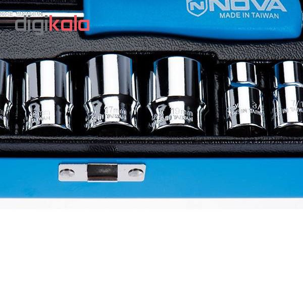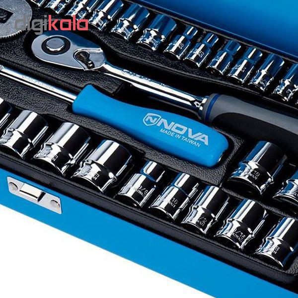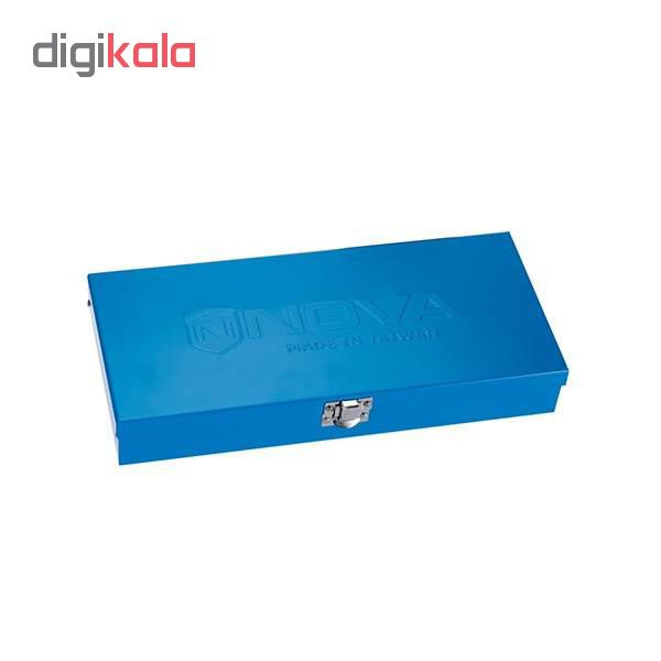 برای باز کردن مهرههای ششگوش، علاوه بر آچارهای تخت و رینگی از آچار و سری بکس هم استفاده میشود. استفاده راحتتر از آچارهای بکس باعث بهکارگیری بیشتر این ابزار نسبت به آچارهای تخت و رینگی، آچارفرانسه و غیره شده است. شرکت «نووا» (Nova) چند ست از این نوع آچار را تولید میکند. مدل NTS-7002 ازجملهی محصولات شرکت نووا محسوب میشود. این مدل با طرح سریهای بکس ششگوش تولید میشود. این مدل دارای 35 سری بکس با درایوهای ¼ و 8/3 اینچ است. سوکتهای درایو ¼ اینچ، شامل 9 سری با استاندارد SAE یا اینچی و 9 سری با استاندارد متریک میشوند. همچنین سریهای درایو 8/3 اینچ، شامل 9 سری با استاندارد متریک و 7 سری با استاندارد SAE میشوند. در کنار سریهای بکس این محصول یک سری بکس شمارهی 16 بلند (مخصوص باز کردن شمع خودرو)، یک آچار بکس جغجغهای، یک دستهی بکس پیچگوشتی و یک اضافه شوندهی طول با اندازهی 70 قرار دارند. جنس بهکاررفته در ساخت آچارها، سریهای بکس و سایر محتویات مدل NTS-7002 از آلیاژ کروم-وانادیوم است. بهکارگیری این آلیاژ در ساخت ابزار، باعث بالا رفتن مقاومت آنها در برابر ضربه، حرارت و فشار خواهد شد و از زنگزدگی هم جلوگیری میکند. سریهای 6 گوشهای کاملا بر روی مهره قرار میگیرد و بیشتر برای استفادههای عمومی و مواردی که نیاز به فشار و نیروی زیاد برای باز کردن مهره نداشته باشیم، کاربرد دارد. شرکت نووا این مدل و محصول 39 عددی را در یک جعبهی فلزی ارگانیزه بسیار محکم و در ابعاد5×15×32 سانتیمتر تولید کرده است.