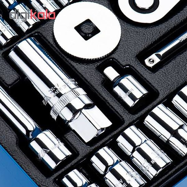 | سایر توضیحات | سوکتهای 1/4 اینچ: - استاندارد SAE یا اینچی شامل: 3/16, 7/32, 1/4, 9/32, 5/16, 11/32, 3/8, 7/16 و 1/2 - استاندارد متریک شامل: 4، 5، 6، 7، 8، 9، 10، 11، 12، 13, 14, 16, 17 و 19 - دارای یک سوکت 16 میلیمتری بلند مناسب برای تعویض شمع خودرو - دارای یک عدد اضافه کننده 7 سانتیمتری - دارای یک عدد تبدیل 1/4 اینچ به 3/8 اینچ |