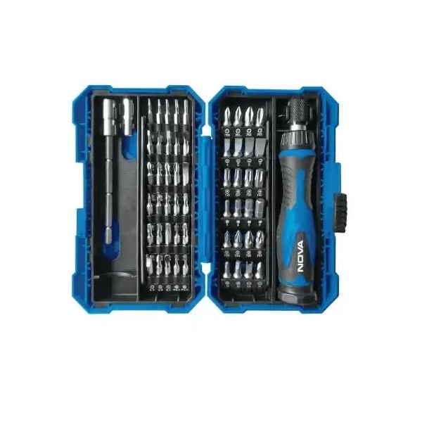 ست بیت 57 پارچه با دسته جغجغهای مدل 1364 نووا ، یکی از ابزارهای اساسی و کارآمد برای افراد حرفهای و علاقهمندان به کارهای فنی است. این مجموعه به دلیل تنوع بالای بیتها و کیفیت ساخت فوقالعاده، برای انواع کارهای تعمیراتی، مونتاژ و پروژههای صنعتی و خانگی مناسب بوده و شامل بیتهایی از جنس فولاد کروم وانادیوم میباشد که دوام و استحکام بالایی دارند و با فناوری سختکاری شده (Heat Treated) تولید شدهاند تا برای کارهای سنگین و طولانیمدت مقاوم باشند. در این ست، دو نوع بیت معمولی و ساعتی وجود دارد، که دامنه کاربرد ابزار را افزایش داده و امکان استفاده در کارهای دقیقتر و تخصصیتر را فراهم میسازد.