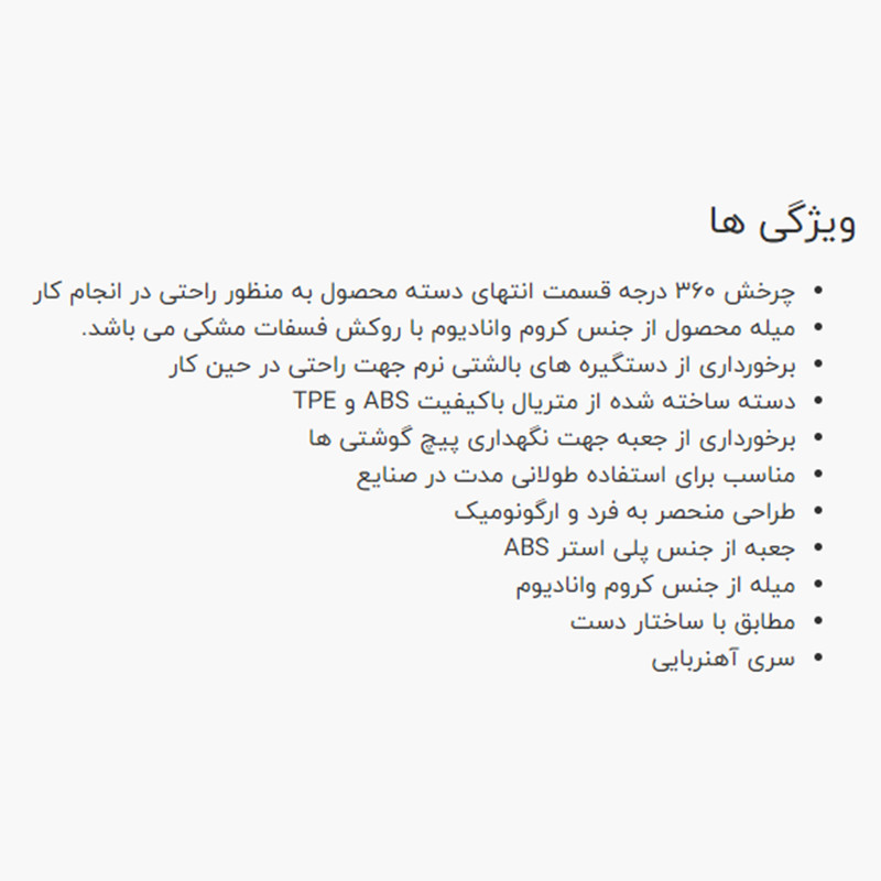 | جنس سری پیچ گوشتی و فازمتر | کروم-وانادیوم |