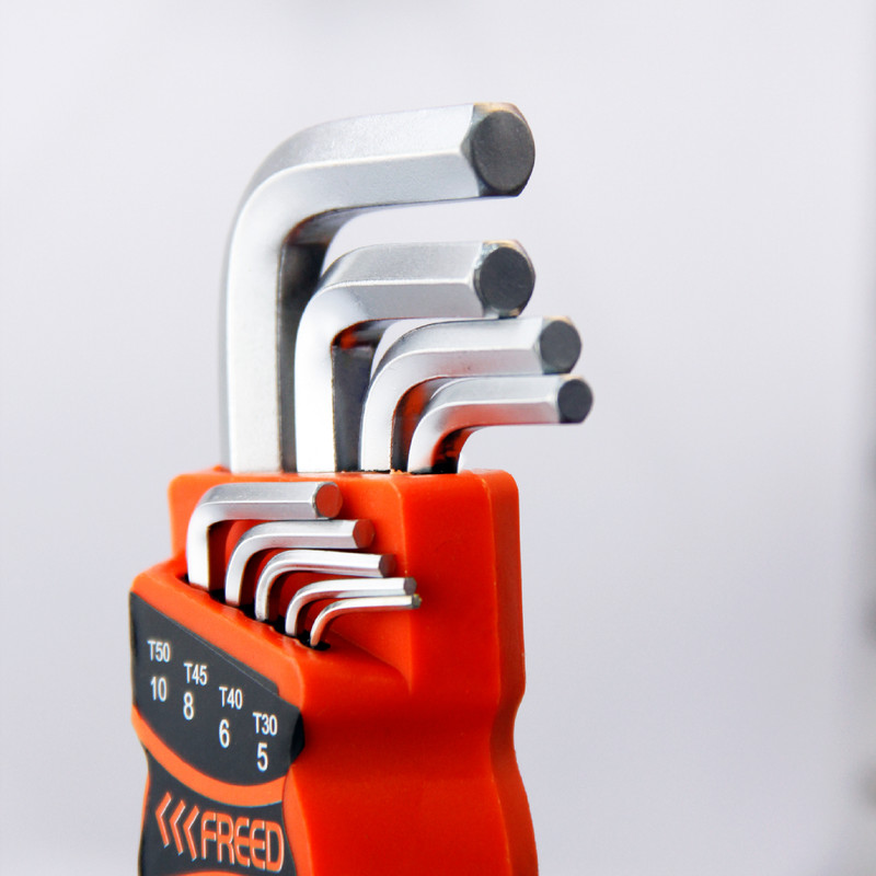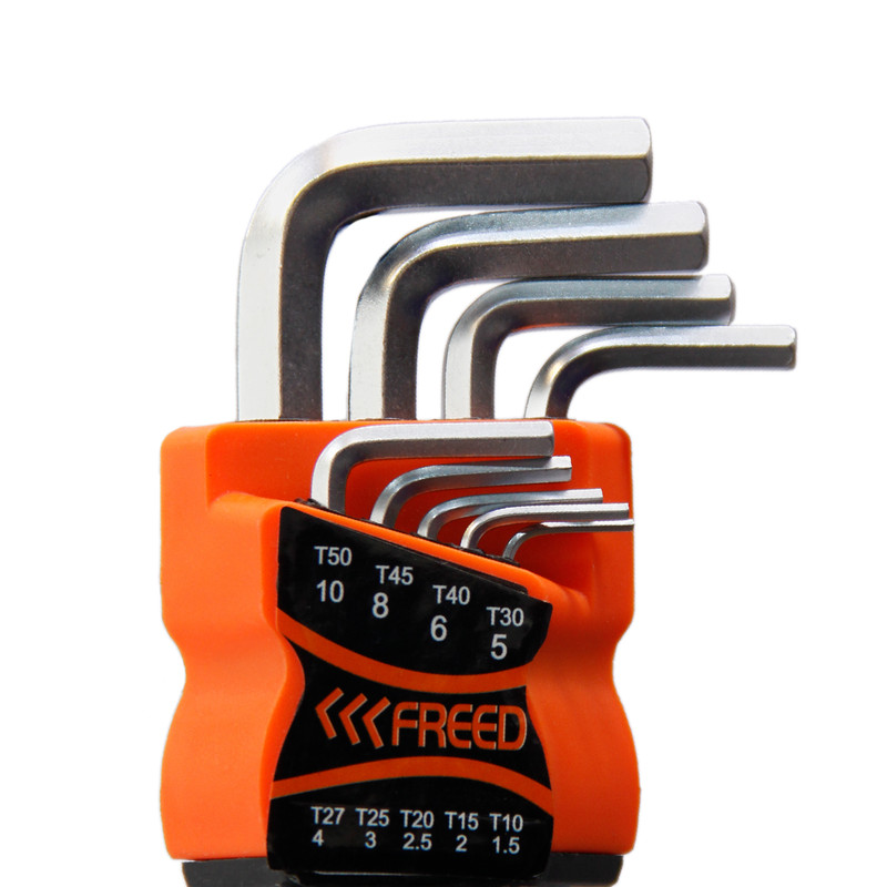 شرکت فرد ( FREED ) به عنوان یکی از بزرگترین سازنده های برتر آچارآلات و ابزارآلات دستی در کشور چین است که از بهترین مواد موجود برای کارکردی حرفه ای و دوام بالا تولید شده است .مجموعه 9 عددی فوق از محصولات شرکت فرد ( FREED ) می باشد که از 9 آلن فوق بلند از سایزهای T10 تا T50 تشکیل شده است . تمامی آلن های این مجموعه از فولاد کروم وانادیم ساخته شده و مقاومت خوبی دربرابر ضربه و خوردگی دارند..این مجموعه روی نگه دارنده کشویی قلاب دار از جنس پلاستیک مقاوم قرار گرفته است.