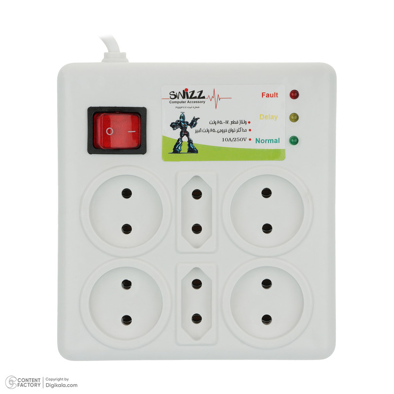 | سایر توضیحات | مناسب برای کامپیوتر ، لپ تاپ، یخچال، فریز، لباسشویی، مایکرویو، تلویزیون و غیره / محافظت از نوسانات برق شهری / دارای اتصالات فلزی |