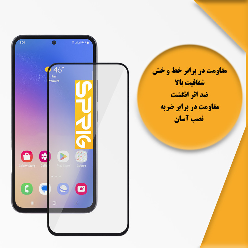 محافظ صفحه نمایش اسپریگ با طراحی نازک و شفاف، از صفحه گوشی شما در برابر خط و خش، ضربه و گرد و غبار محافظت می‌کند، بدون آن‌که وضوح نمایشگر را کاهش دهد. این محافظ با نصب آسان و چسبندگی قوی، بدون ایجاد حباب هوا، به‌راحتی روی صفحه قرار می‌گیرد و تمیز کردن آن به راحتی انجام می‌شود. این محافظ مقاوم و بادوام، انتخابی ایده‌آل برای محافظت از صفحه نمایش گوشی شماست.