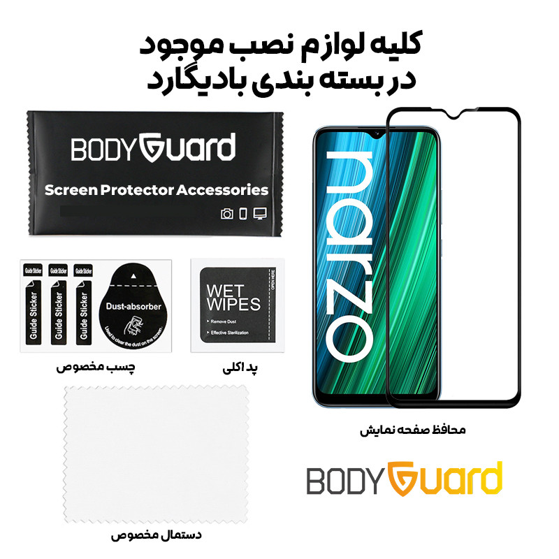 | مشخصات دیگر | گلس فول تمام چسب شیشه سخت شده و گرمادیده 9H لبه های تراش خورده مقاوم در برابر هر گونه خط و خش و اجسام نوک تیز مناسب برای استفاده با اکثر قاب ها شفافیت HD بدون افت کیفیت صفحه نمایش لایه محافظ مخصوص برای جلوگیری از پخش شدن شیشه در هنگام شکستن حساسیت لمس بالا |