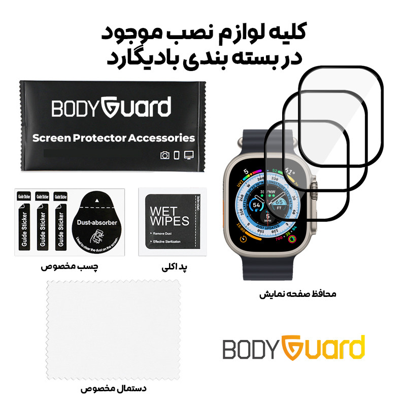 با توجه به اندازه بزرگ صفحه نمایش ساعت جدید اپل شرکت بادیگارد اقدام به تولید محصولی که علاوه بر محافظت کامل از صفحه نمایش خود نیز کاملا نشکن می باشد. نصب بسیار ساده و همچنین موجود بودن تمام لوازم نصب داخل بسته بندی بادگارد از مزایای این محصول می باشد.