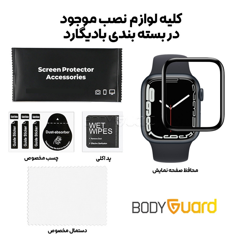 | توضیحات | با توجه به مشکلات استفاده از گلس برای ساعت های هوشمند بخصوص آیواچ (اپل واچ) بخصوص از کار افتادن تاچ گوشه های صفحه نمایش، شرکت بادیگارد دست به تولید نوعی محافظ صفحه از جنس پلیمر نانو زده تا علاوه بر حفظ تمام خصوصیات مثبت گلس مشکلات گلس را نیز برطرف کند. ویژگی متمایز این نوع محافظ نشکن بودن آن است همچنین به لطف گوشه های خمیده این محافظ صفحه حاشیه مشکی رنگ اپل واچ نیز کاملا پوشیده و محافظت می شود. |