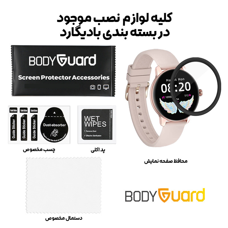 | مشخصات | پوشش تمام صفحه، پوشش حاشیه مشکی دور ساعت، تمام لوازم نصب داخل بسته بندی، ویدیو نصب داخل بسته بندی |