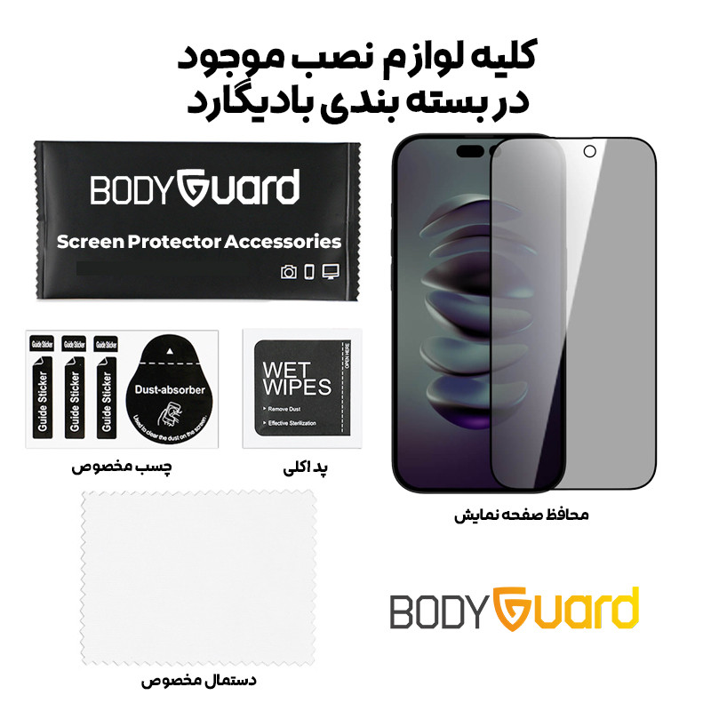در دنیای امروزی با توجه به شیوه متراکم زندگی حفظ حریم شخصی فردی تبدیل به دغدغه روزمره شده است. می توان ادعا کرد که شخصی ترین وسیله هر کس گوشی موبایل شخص می باشد. سرک کشیدن افراد کنار دستی در گوشی موبایل در مکان های عمومی یا حتی در جمع خانواده یا بین دوستان یکی از آزاردهنده ترین رفتارها می باشد. برای رفع این مشکل شرکت بادیگارد نوعی محافظ صفحه تولید کرده که می تواند حریم خصوصی شما رو به خوبی حفظ کند. گلس پرایوسی یا همان محافظ صفحه حریم شخصی به گونه ای طراحی شده که فقط فردی که مستقیم به صفحه گوشی موبایل نگاه می کند قادر است صفحه نمایش را ببیند و افراد کناری تنها صفحه سیاه رنگ مشاهده می کنند. این گلس علاوه بر خاصیت حفظ حریم شخصی صفحه نمایش گوشی موبایل را در برابر هر گونه ضربه و خط و خش (خشگیر) محافظت می کند.